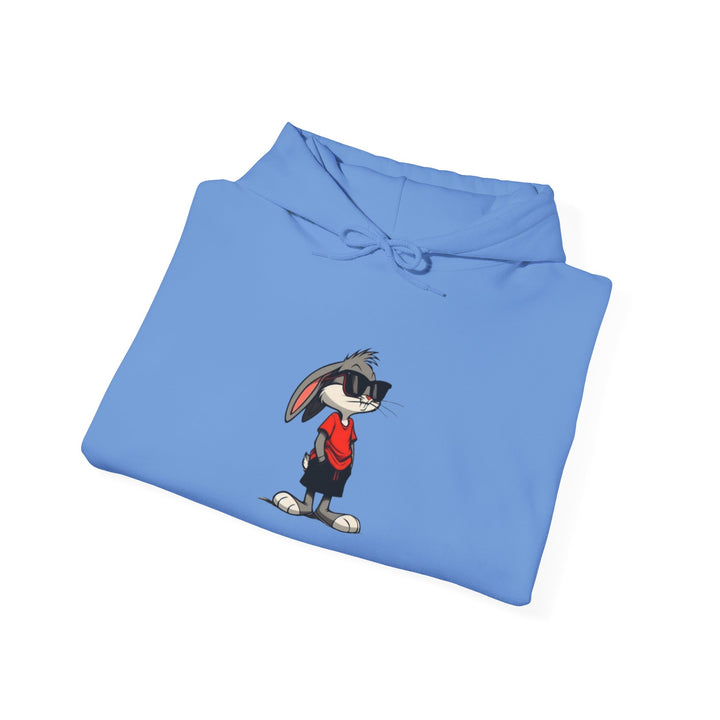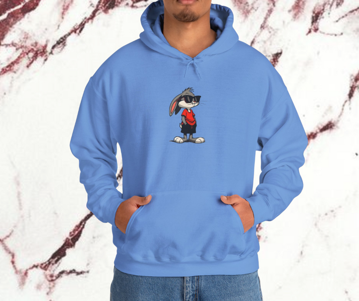 Bring playful energy into your street-wear collection with this cool bunny graphic hoodie. Featuring a stylish cartoon bunny rocking shades and a laid-back outfit, this hoodie is perfect for anyone who loves casual fashion with a fun twist. Available in black, white, and blue, this unisex hoodie offers a versatile style that works for any wardrobe.