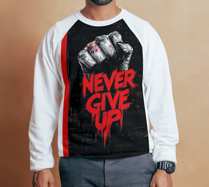 Never Give Up Motivational Sweatshirt – Bold Graphic Street-wear Pullover: