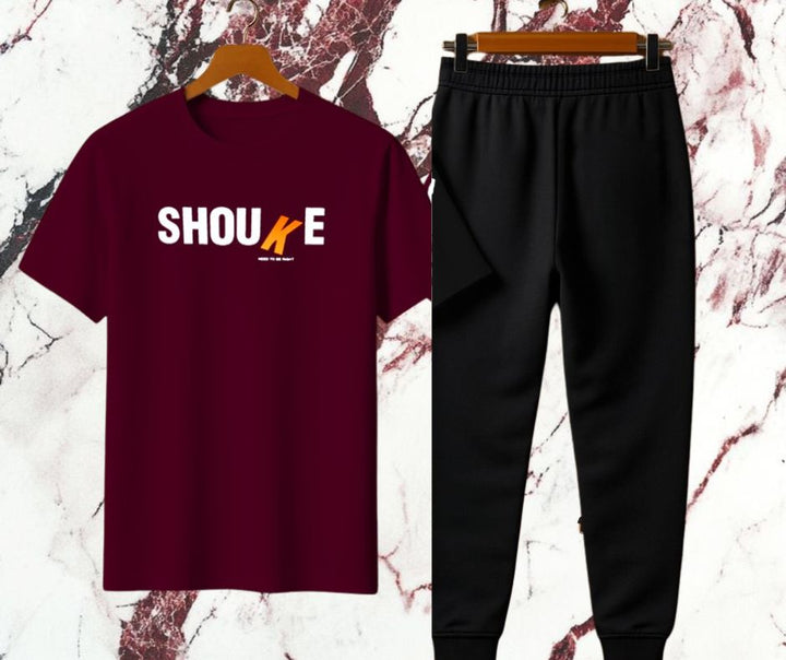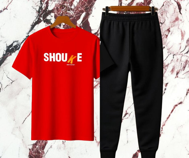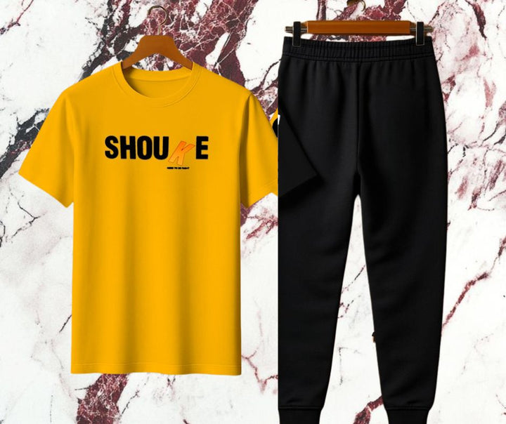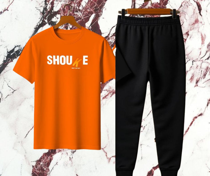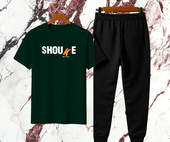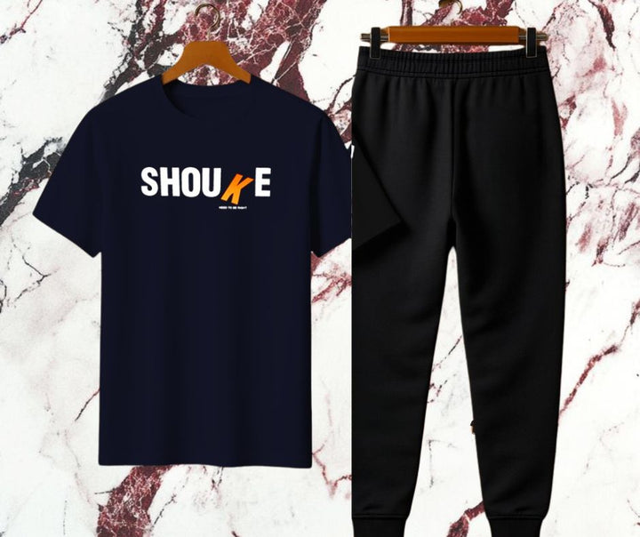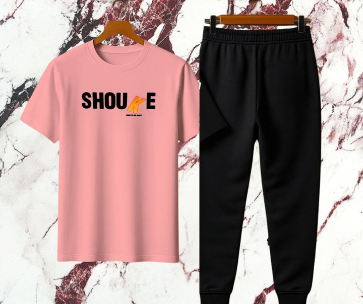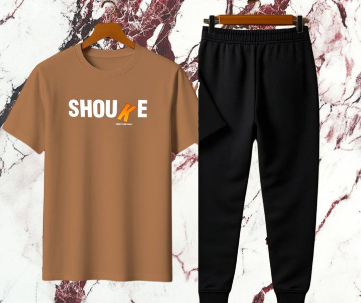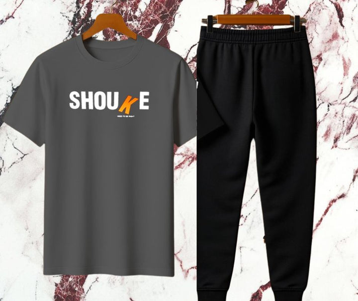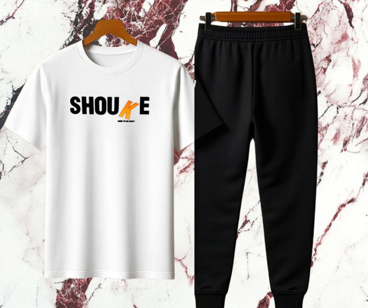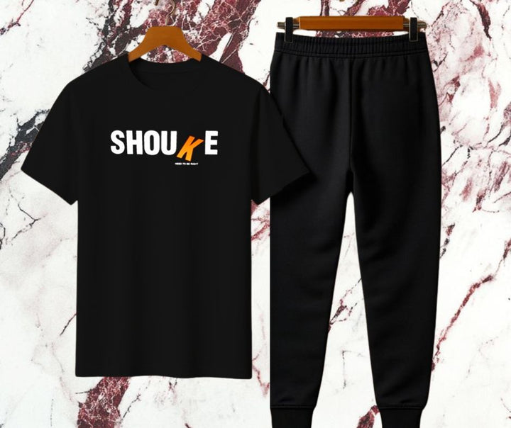 Upgrade your wardrobe with the SHOUKE Men’s T-Shirt & Trousers Combo Set, designed for men who want style, comfort, and confidence in one outfit. This two-piece clothing set includes a black T-shirt with the bold SHOUKE logo and matching trousers, making it the perfect choice for a modern streetwear look.