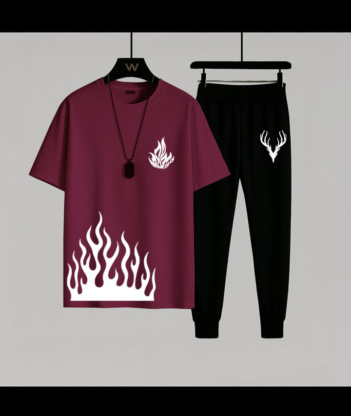 Trendy Flame Maroon T-Shirt & Trouser Combo | Super Trendz