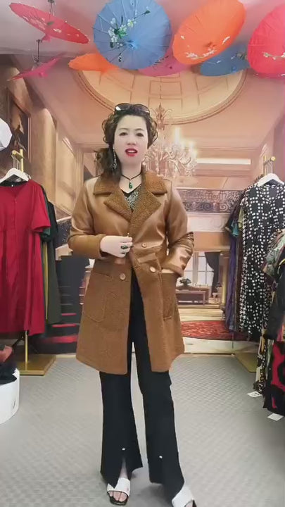 The jacket features a double-style design, combining a teddy fleece look with a sleek leather finish—perfect for women who want a trendy yet functional winter coat. Its mid-long length provides full coverage, making it an ideal choice for chilly mornings, evening outings, and everyday casual wear.